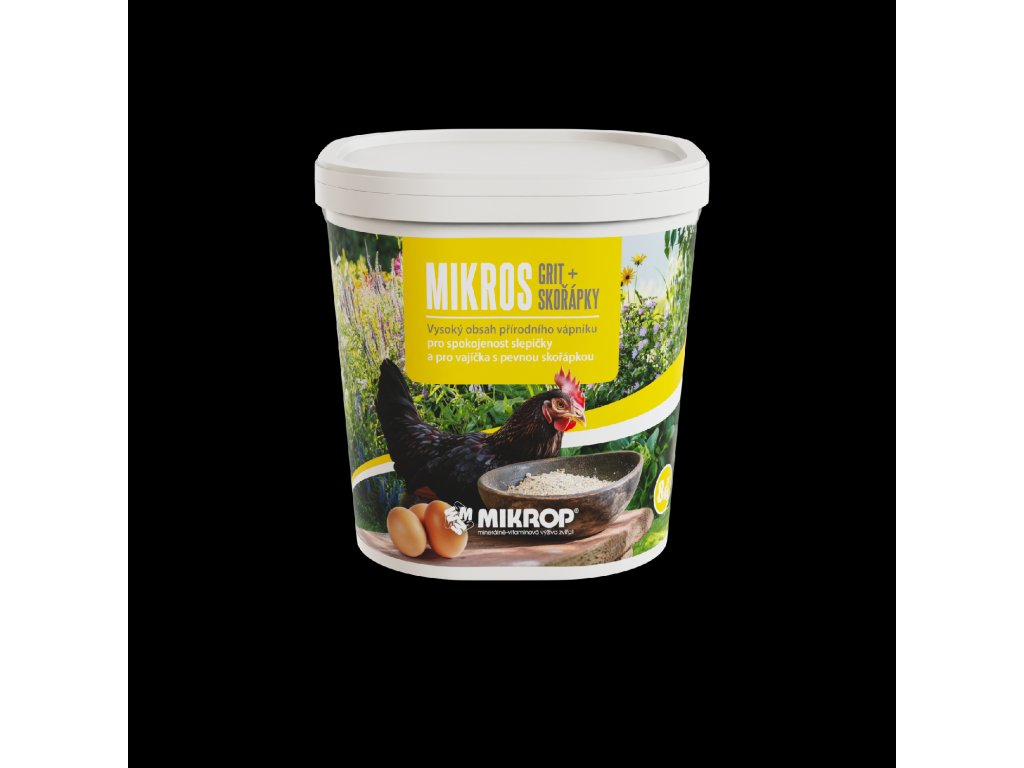 Mikros Grit + Skořápky přidávejte volně k dispozici drůbeži. Případně můžete přimíchávat do krmiva dle potřeby: nosnice cca 5 – 7 %, mladá drůbeže (nad 6 týdnů) cca 2 – 4 % a u brojlerů cca 1 – 3 %. Každopádně by měl být také volně k dispozici v krmítku, aby si mohla drůbež sama regulovat příjem. Zabezpečte dostatečné množství pitné vody