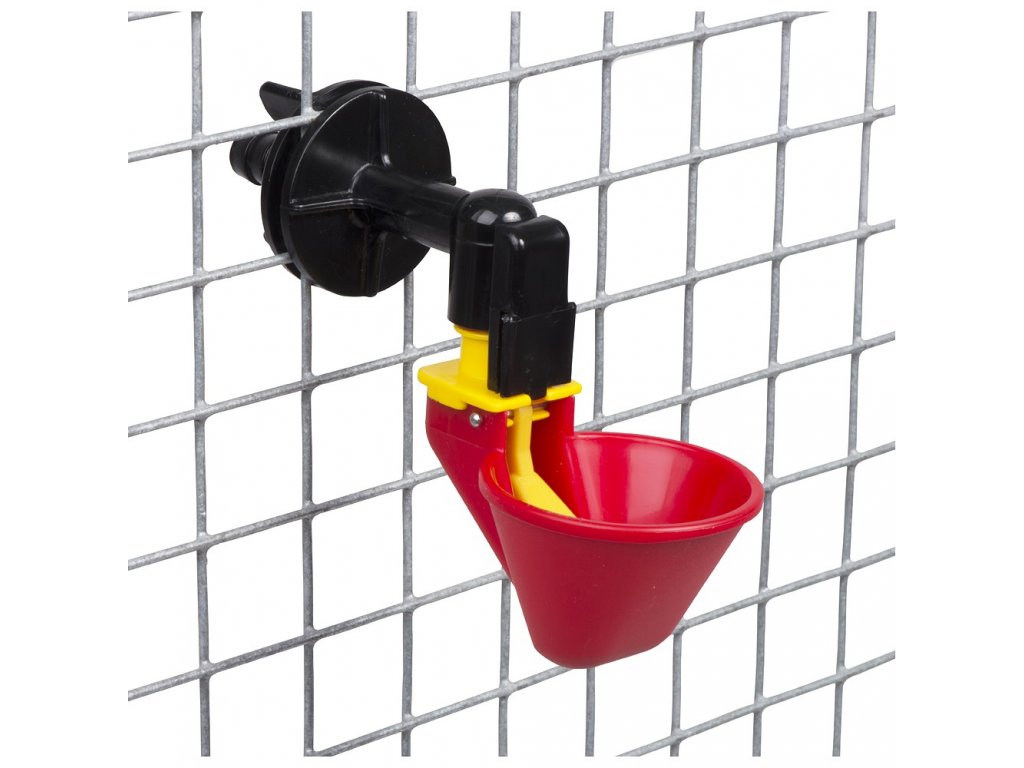 Napáječka se naplní po doteku zobákem nebo prstem. Dotekem se stiskne jazýček uvnitř a napáječka se naplní.
