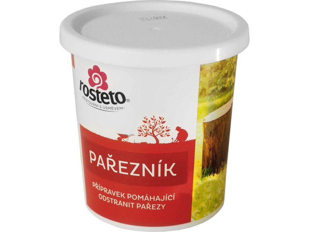 Přípravek na urychlení rozkladu pařezu odumřelého stromu a snadnější mechanické odstranění. Do středu pařezu vyvrtejte díru o průměru cca 2 cm a hloubce cca 20 cm. Stejnou vyvrtejte šikmo ze strany asi 8 cm pod hranou pařezu tak, aby se obě díry propojily. Tímto způsobem lze likvidovat pažezy do průměru 30 cm. U větších průměrů je nutné počet děr úměrně navýšit. Do každé kombinace děr nasypte cca 100 g přípravku ""na pařezy"" a zalijte teplou vodou, kterou pak dolévejte podle potřeby po dobu 4 - 6 týdnů. V této době chraňte řeznou plochu pařezu před nadměrným deštěm. Nasycení pařezu přípravkem umožní jeho rychlý rozklad a usnadní jeho mechanické odstranění. Je-li možné odstranit pařez vypálením, pak můžete cca 6 týdnů po absorpci přípravku postupovat následovně: